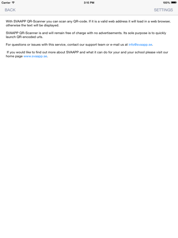 SVAAPP QR-Scanner is and will remain free of charge with no advertisements. Its sole purpose is to quickly launch QR-encoded urls.