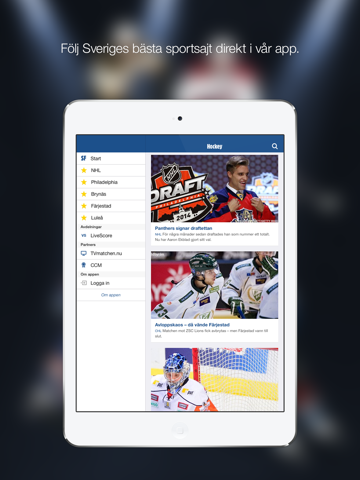 I SvenskaFans Hockey-app får du senaste nytt om SHL, NHL, KHL, Hockeyallsvenskan, Division 1, SM-slutspelet, Kvalserien, Tre kronor.