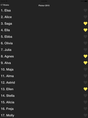 - Full lista över svenska förnamn, uppdelade mellan killnamn och tjejnamn