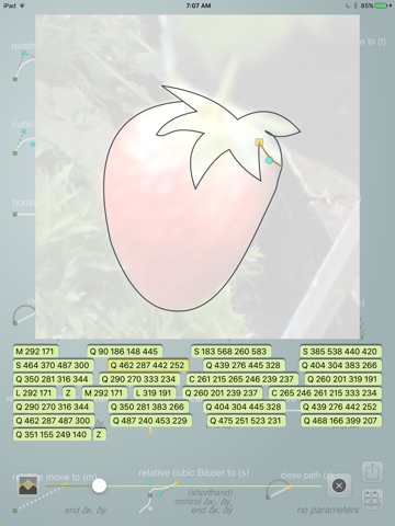 SVG (Scalable Vector Graphics) is an Internet technology for drawing crisp, lightweight, zoomable images. SVG paths are a way to render complex shapes. SVG Paths is an app to help you learn about and start drawing your own paths. Accessible in a way books cannot be, you will quickly master cubic and quadratic Bézier splines, elliptical arcs and simple lines as you explores the creation of complex shapes. Then you can share them, and even generate animated GIFs capturing the act of drawing.