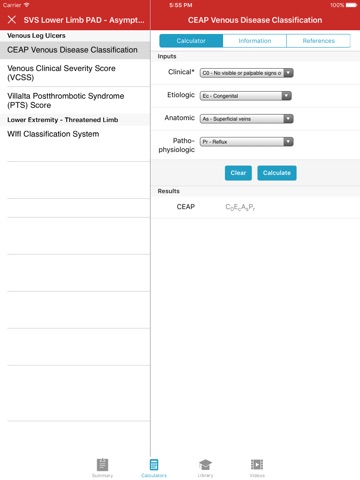 The SVS iPG contains guideline recommendations, clinical calculators, and access to the full-text guidelines .