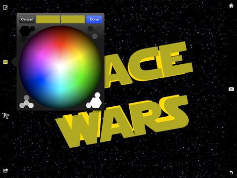 Add a background picture from your photo library or camera! Overlay your text using background pictures to create awesome effects!