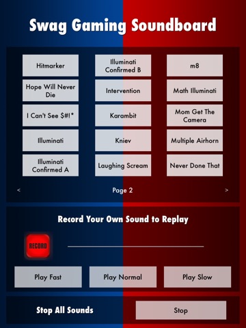 Are you a Swag Gamer and want some MLG noScope sounds to go along with your gaming? Well here is your chance! Have fun with your friends, family or fellow gamers with this app! Also included is a voice changer! Record your own messages and play them back in Super Sonic Lightspeed or Sloooow Speed.