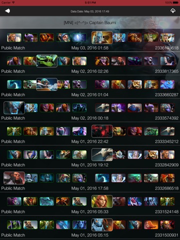 Apps users list is preloaded with famous Dota2™ players like Purge, Sunsfans, Baumi and Reaves.