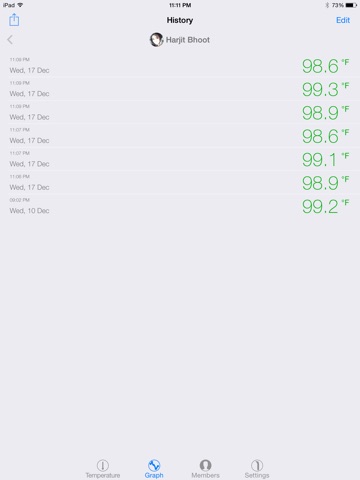 Sharing temperature results with doctors, physicians or partners has never been easier. Simply add them to the sharing list and they will instantly receive any/all new readings, no matter where they are in the world.