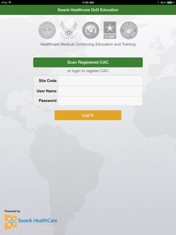 Log in and scan your CAC ECA card so that you won’t have to enter your Site Code, ID or password when you use the App in the future.