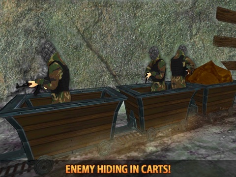 Rush to diamond mine, smugglers are stealing gold treasure in wooden cart moving on rail road. Intercept their robbery plan and start shooting terrorists. Aim for head shot and take out enemy sniper gunman outside. Create diversion to counter enemy’s escape plan during hostile situation. In disparate battlefield location, arrest is not an option. Shoot and kill bad guys in mine to save innocent civilian and rescue hostages.