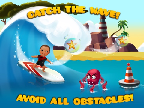 Hop on a surfboard and ride ocean waves with Devon. Go up or down to collect coins but try not to hit octopus, old lighthouse and shark!