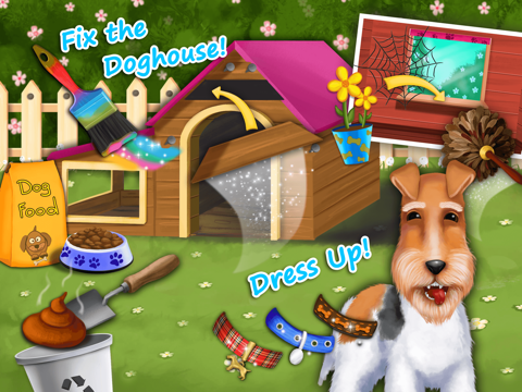 · Make your puppy happy: fix and decorate its doghouse and dress up the puppy!