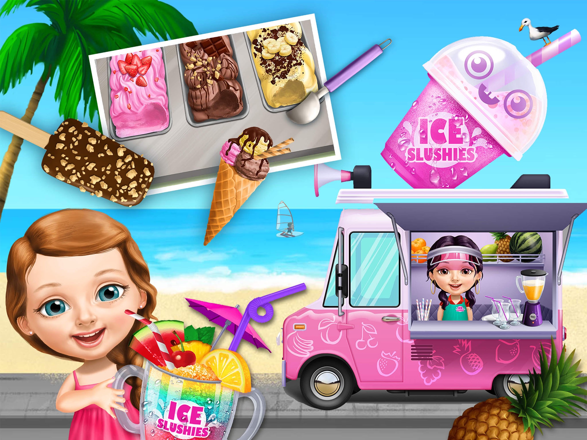 Become a chef! Grill some yummy hot dogs, make delicious ice cream and mix frozen rainbow beach party slushies!