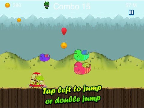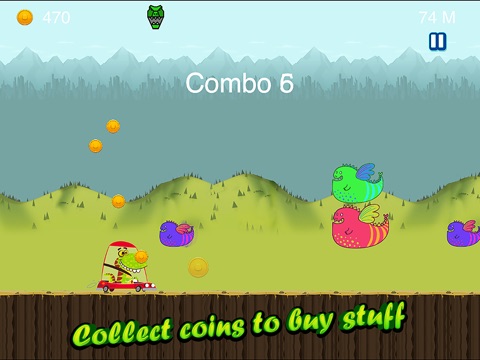 The little Dino driving makes the game more entertaining. To jump or double jump, just tap ‘Left’. Tap right to attack the flies trying to attack you. Jump and collect coins to buy stuff and increase your score. Download this fantastic game in your iPhone today. Without a doubt, you will love this game. Share with your friends too!