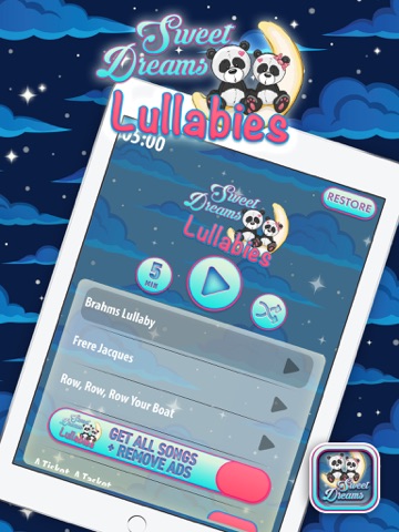 Bear in mind that Sweet Dreams Lullabies app is free to download and play the list of several lullabies provided; however, to get some more amazing soothing melodies you need to purchase them for real money. You can either buy a pack of songs, or buy individually only the ones you like best. If you do not want to use this option, please disable the inapp purchase in your devices settings.