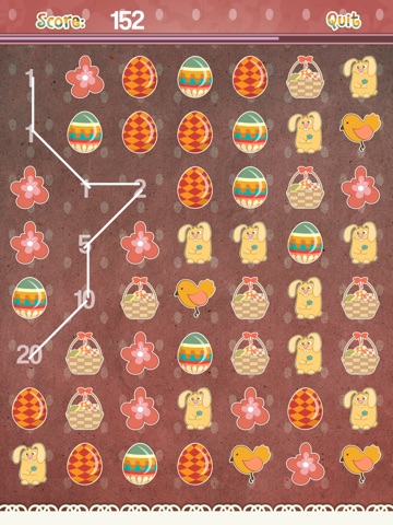Connect and match similar animals, flowers or eggs to collect as many points as possible in 60 seconds! Get more time when connecting items! The higher the number of items you connect with one movement, the bigger the score and the more time you get! Hurry up, your time is limited!