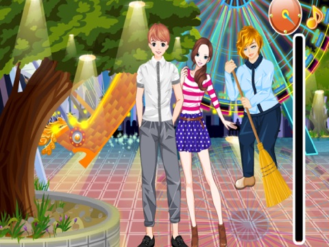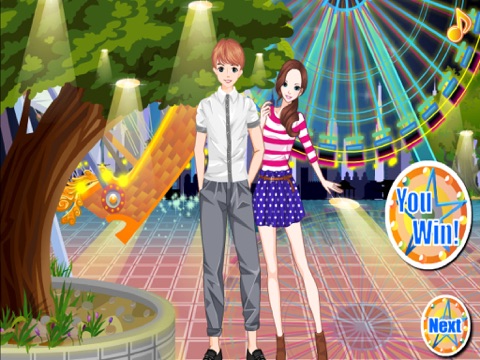 A cute young couple standing on a park and were in the great mood for kiss. Make the couple to kiss passionately without getting caught by a woman or time limit as otherwise you will lose a life. Then please help them to dress up the beautiful clothes to have a wonderful dating. Have Fun!