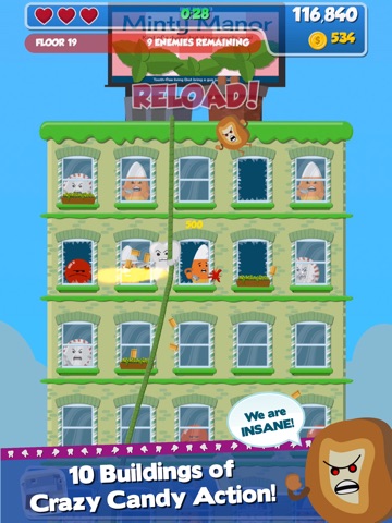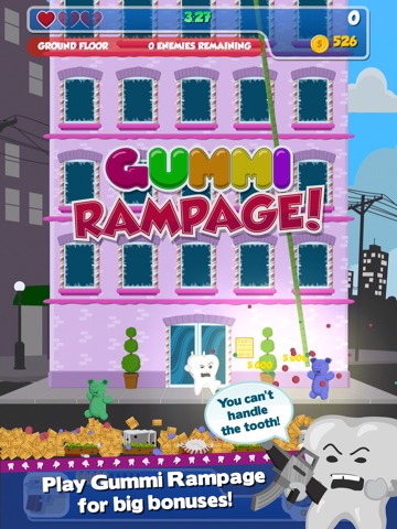 They killed his best friend. Get ready for all out action and fun as Mack Masher, 80’s action movie star (and tooth) goes on a quest for vengeance against the candy responsible. Rappel down building after building, unleashing a flurry gunfire and explosions, collecting coins and lottery tickets along the way. Revenge was never so sweet!
