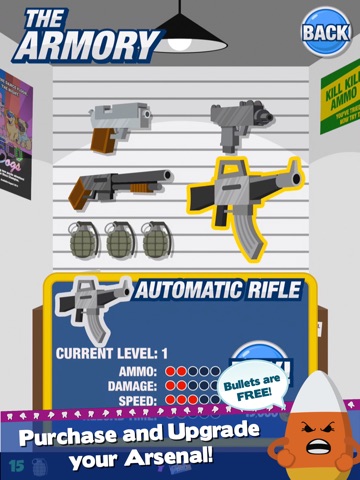 Visit the Armory to purchase and upgrade your weapons! Four unique options to best suit the way you want to play!
