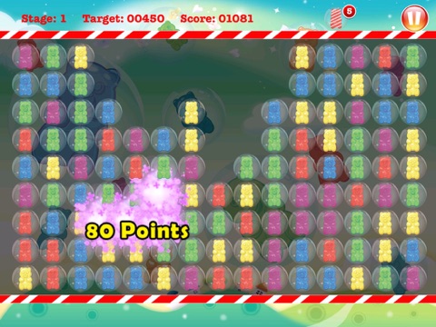 Simply tap on the board to remove groups of gummy bears that are the same color. The more gummy bears you clear with a single tap, the higher you score. Challenge yourself again and again as you attempt to master each and every level. Clear the whole board to get bonus points!