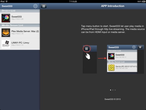 Sweet333 allows you to watch TV programs anywhere at your home. All you need is to connect your Cable / Satellite / Terrestrial / IP Set-Top Box via HDMI to the device.