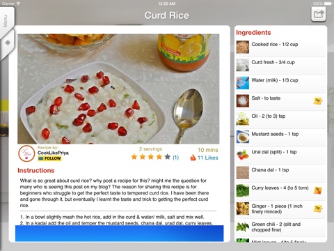 Has tons of Indian recipes, videos and tips! If you love Indian food you must get this app!