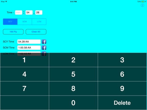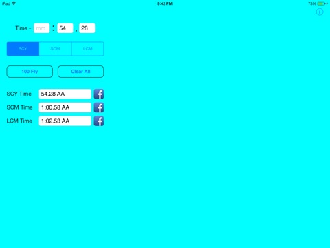 Swim Converter is a fast and simple way to convert your swimming times. It auto-updates in real time and is very fast and easy to use, so you don’t miss your next race! It has an extremely easy input with no number wheel and converts to all 3 pools at once. No internet connection required (except for twitter/facebook posting), which is very helpful since many aquatic centers do not have wireless available.
