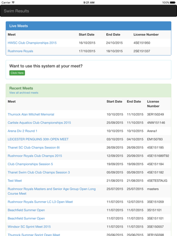 Swim Results displays live swim meet results from UK swim meets. The club must be using the free swimresults.co.uk service to provide their results online.