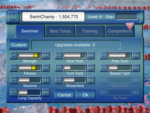 In-depth simulation with swimmer customization, training and upgrades including realistic athletic characteristics like strength, fitness, stamina and lung capacity, but also all the classic skills you can sharpen through practice: dive, turn, streamline and all strokes techniques.