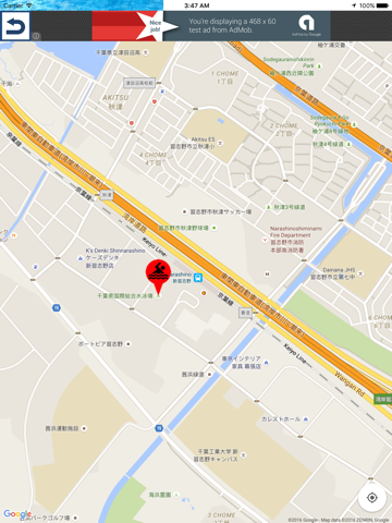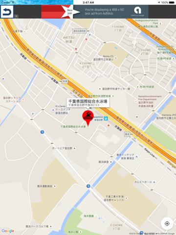 マップ画面には地図の上にプールがピンで表示されています。