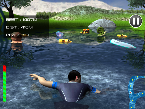 You can get a realistic swimming experience with this swimming app, swim through the river and collect the pearls and avoid the starfish, as you can purchase a new life with the pearls, but the starfish decreases your collected pearls. Collect all the life buoy, one life buoy keep you alive for one level, so keep on collecting the life buoy to continue your swim at every level.