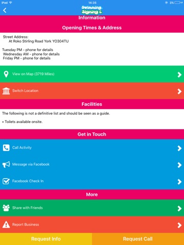 For your convenience we include days when classes are on, locations, navigation via maps and several ways to contact the provider straight from the App, so easy you can find out what you want to know using just one hand (while the other holds your baby probably!).