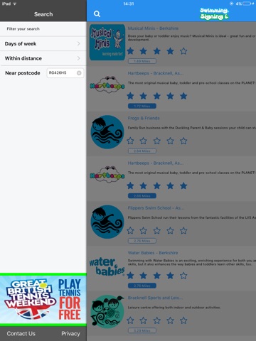 Classes are found using your location (Global Positioning) and this App is aimed totally at Pre-School Children 0-4 years old age groups. Perfect for newborns, toddlers and confident walkers.