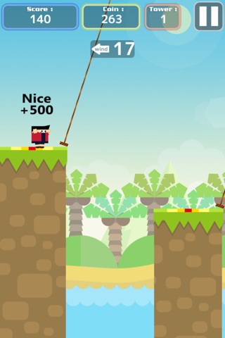 Use your ropes to swing hero from one tower to another. Happy tap on screen to release your rope and jump to target tower. Each score you got when landing succed!