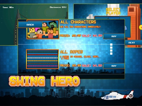 Use your ropes to swing a destructible character from one skyscraper to the others. You have full control over your ropes, touch on a building to throw your rope there, touch again to release it and fly through the sky. Perform various kind of jumps to get achievements, attach to flying planes or helicopters and try to beat your friends or all other players by competing with them for the best score.