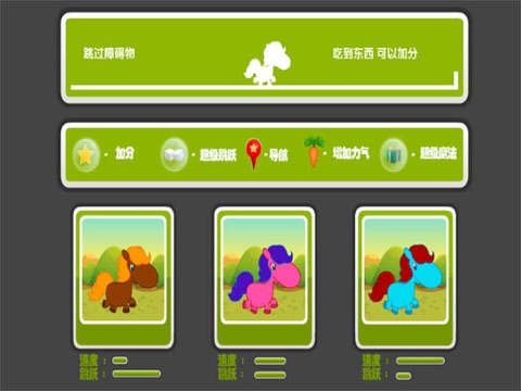 This is a very simple and fun little game, there are three ponies to choose from, some of the obstacles encountered in the course of their run, control the pony jumping to avoid obstacles, collect props, get a higher score, do not hit obstacle Oh! Along the way there are many surprises waiting for you harvest Oh!