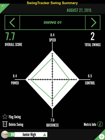 The SwingTracker sensor accurately captures data throughout the swing using thousands of data points per second. It provides insight and feedback, including one overall score; and scores for four major swing components - Speed, Power, Quickness, and Control. And, it compares your swing within a skill level.