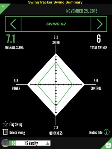 The SwingTracker sensor accurately captures data throughout the softball swing using thousands of data points per second. It provides insight and feedback, including one overall score; and scores for four major swing components - Speed, Power, Quickness, and Control. And, it compares your swing within a skill level.