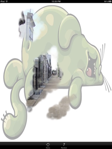 Options are to choose an image from the photo library, have the app choose an image at random, or snap a photo of something new. Shake the device, and the overlay resets.