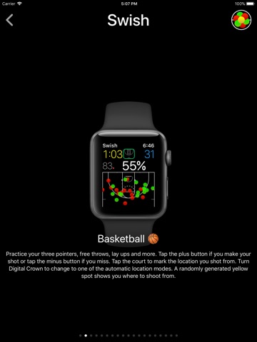 Also, the app keeps track of your shooting percentage, heart and health performance data, streaks, makes, misses, location on the court, and other stats too.