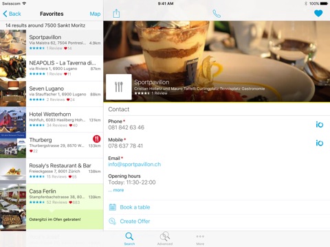 • Over 9,000 restaurants throughout Switzerland can be reserved directly online with the click of a mouse.