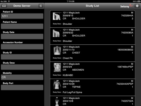 The Swissray ddRTouch medical image viewer is quickly becoming the next generation in mobile medical image display by combining multi-modality imaging with individualized physician workflow. In combination with the Swissray ddRTouch server, ddRTouch allows facilities to retrieve multi-modality images from their existing 3rd party PACS server and display the content on the iPad and iPhone. Additionally, ddRTouch can receive other image/file formats, such as JPG, BMP and PDF from the adjacent information systems and display the files in an organized fashion for general physicians to view.