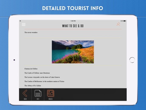 AUGMENTED REALITY, unlike other tourist guides you will be able to discover the city with the best iPhone tool - AR - Just click on the AR button, turn yourself 360° and view on the screen where the best spots are and how to find them. You can also scroll up and down to view the closest and furthest attraction. Slide through the tutorial for more tips.
