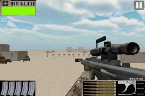 Sniper training at desert shooting range. Show yourself how fast are your reflexes and destroy all targets in range. Experience the action as Rambo. Put yourself in the Navy Seals, Delta Force, SAS, Mossad, FBI, CIA.