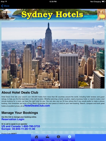 Find the best hotel deal, in the right location. You dont need an internet connection to access the offline maps or to find hotels in and around Sydney. And when youre online, you can also browse the latest hotel reviews and guest ratings, as well as make hotel reservations and hotel bookings.