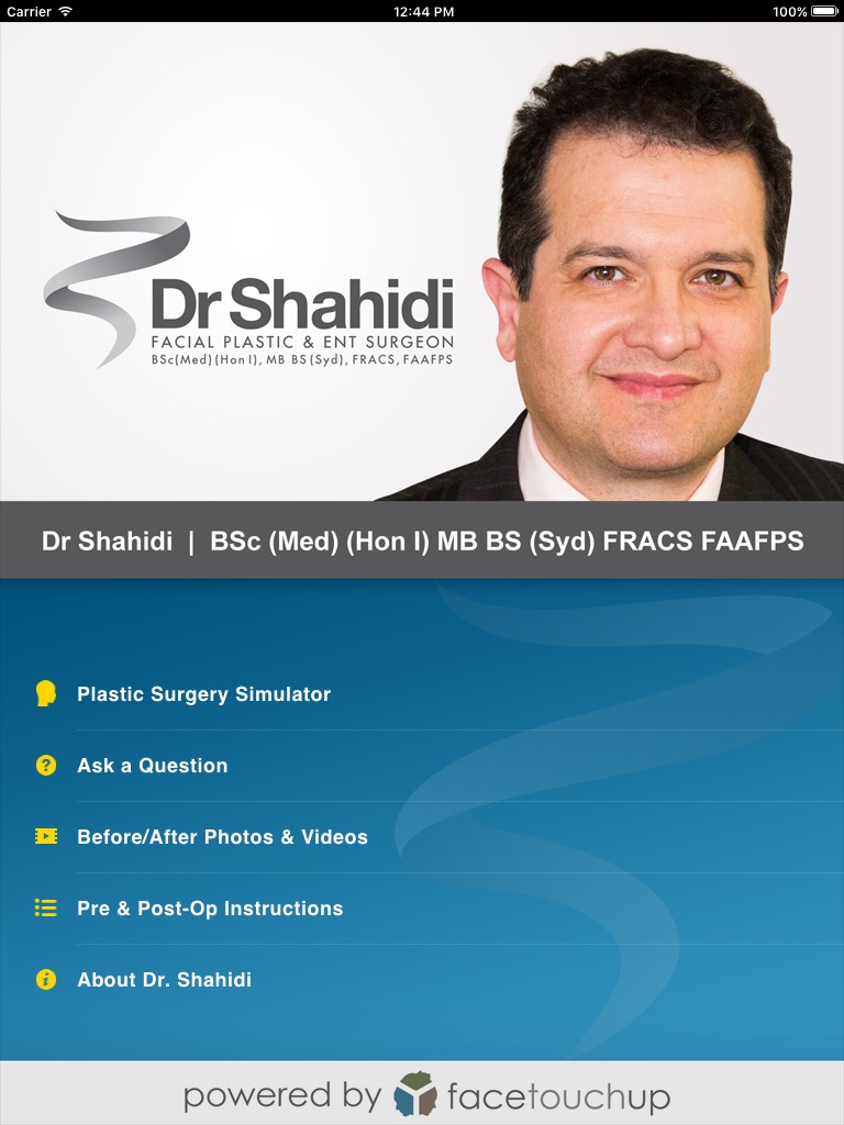 - Learn more about Dr. Shahidi: Right from the app, you can read the doctor’s bio, browse his credentials, and request a no-obligation consultation.