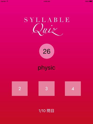 日本人に馴染みのない英単語の音節をクイズ形式で手軽に学べるアプリです。合格を目指して、正解を積み重ねてください。合格回数は保存され、また合格回数によってランクが変わります。アプリ内から合格回数やランクをFacebbokやtwitterにあげることもできます。