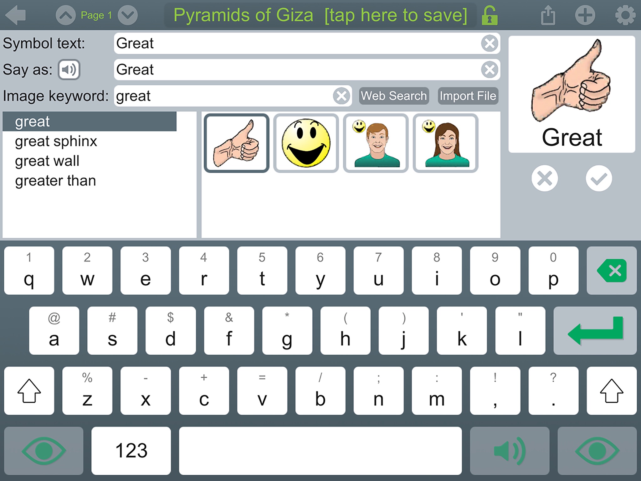 SymbolSupport is an iPad utility app that effortlessly adds symbols to text. As textis typed, symbols are automatically added above it. Text can also be copied from pre-existing written materials and pasted into SymbolSupport where symbols are instantly added. Documents are read with a high-quality text-to-speech voice and include word-by-word highlighting. This support helps students better understand class assignments.Symbols from Slater Literacy Support Pictures™ and Attainment’s Image Library are included. Plus, there is easy access to your camera roll and a built-in internet image search.Easy-to-use editing tools include changing auto-assigned symbols to other symbols or imported images and removing symbols from text to reduce the number of symbols on a page. SymbolSupport is designed to create symbolized text quickly and easily. Sharing these documents is equally important. Share documents via AirDrop, email, or send to any cloud storage setup on the iPad. Documents can be sent as a PDF for studentportfolios or shared with parents. Documents can also be sent as a SymbolSupport file which can be opened by SymbolSupport or SymbolSupport Lite apps.