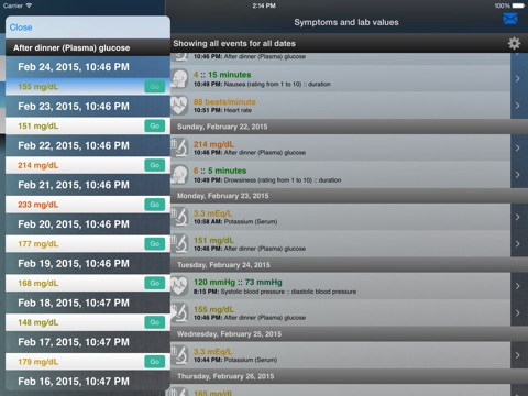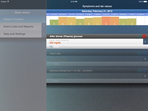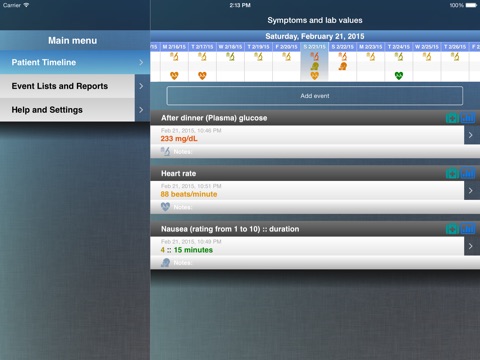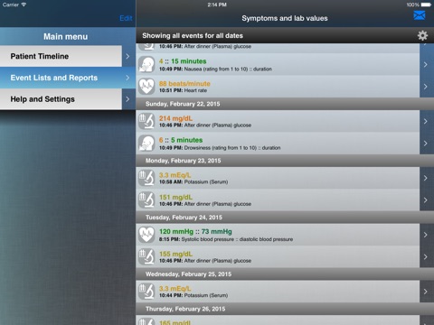 You can record over 20 different symptoms and 100 different lab values! We will add more symptoms and lab values at your request.