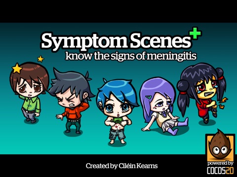 Symptom Scenes is an arcade game featuring a cast of cute characters suffering from Meningitis or Septicaemia. Its a race against time to recognise the symptoms and save as many as you can!