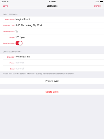 Create synchronized metronomes for events where your musicians can not see or hear a conductor or each other.