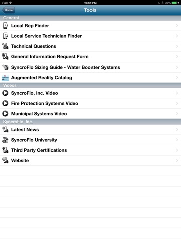 The SyncroFlo mobile application enables you to access product information, request quotes, contact local distributors and understand installation and operating constraints. SyncroFlo packaged pumping systems are engineered, manufactured and shipped to satisfy your commercial and municipal building applications to include Fire Protection, HVAC, Golf Irrigation, Plumbing, IronHeart, Rainwater Harvesting and Control Panel systems.