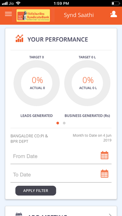Synd Saathi - A Tool to Generate Leads, Manage Meetings and View Your Performance on the go, for the Syndicate Bank Staff.